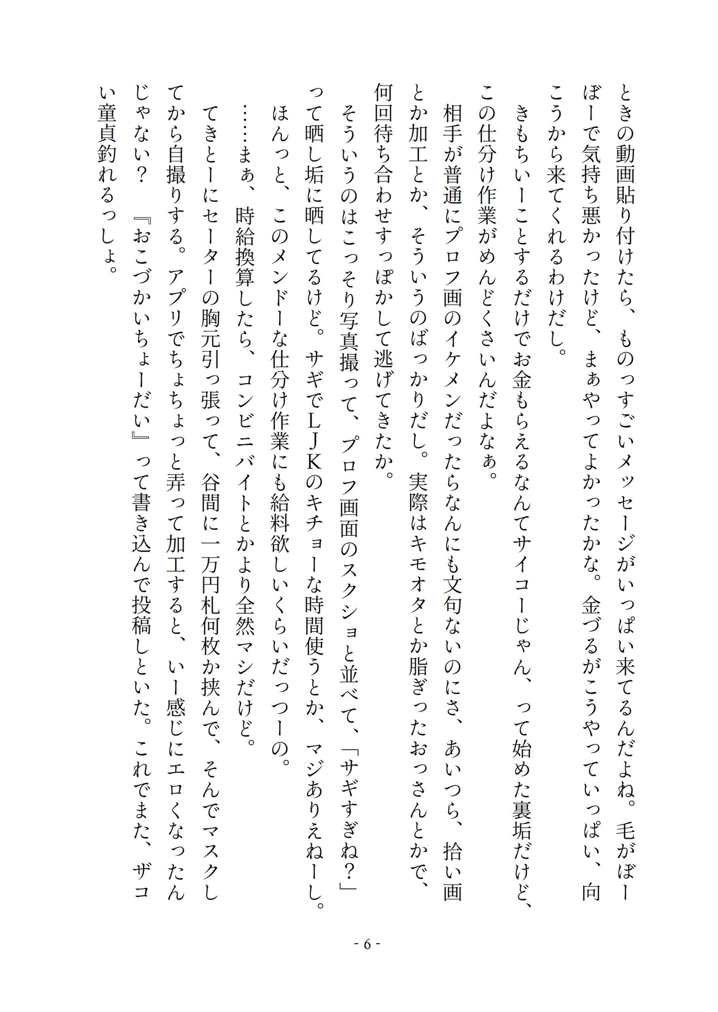 あたしは裏垢で「カモ」を見つけては小遣いを稼ぐ、イケてるLJK。