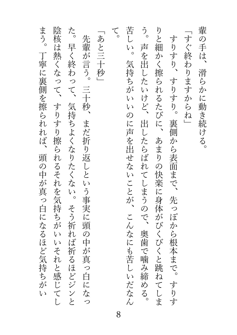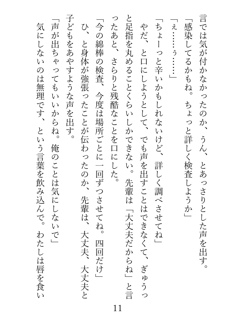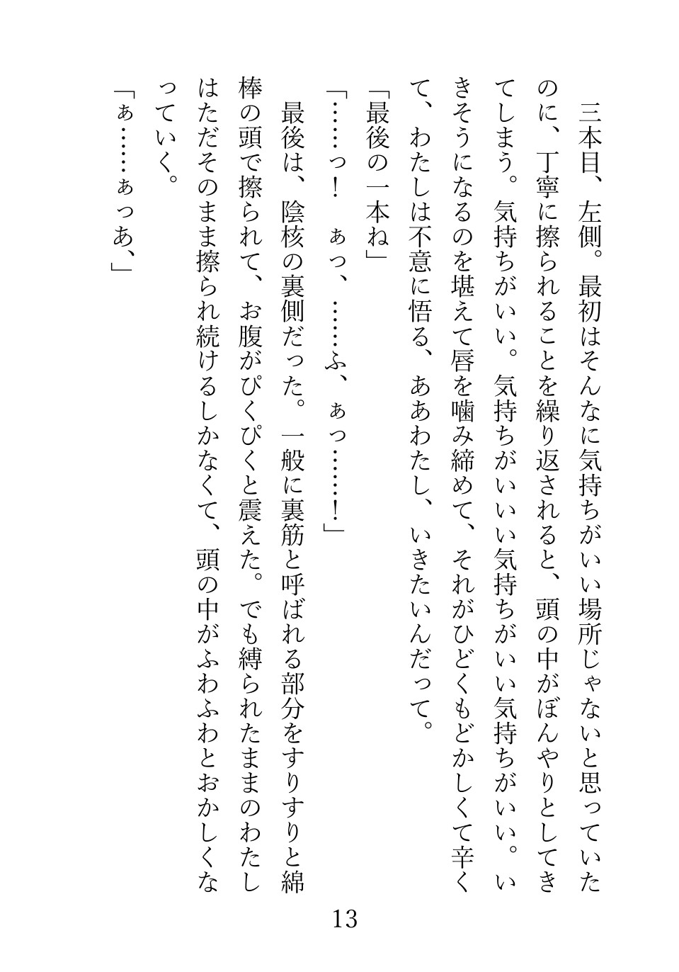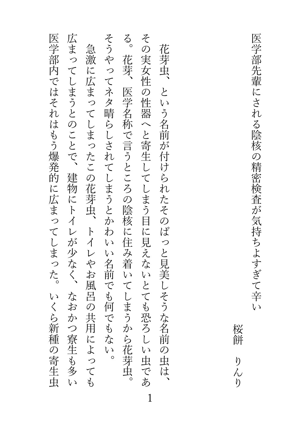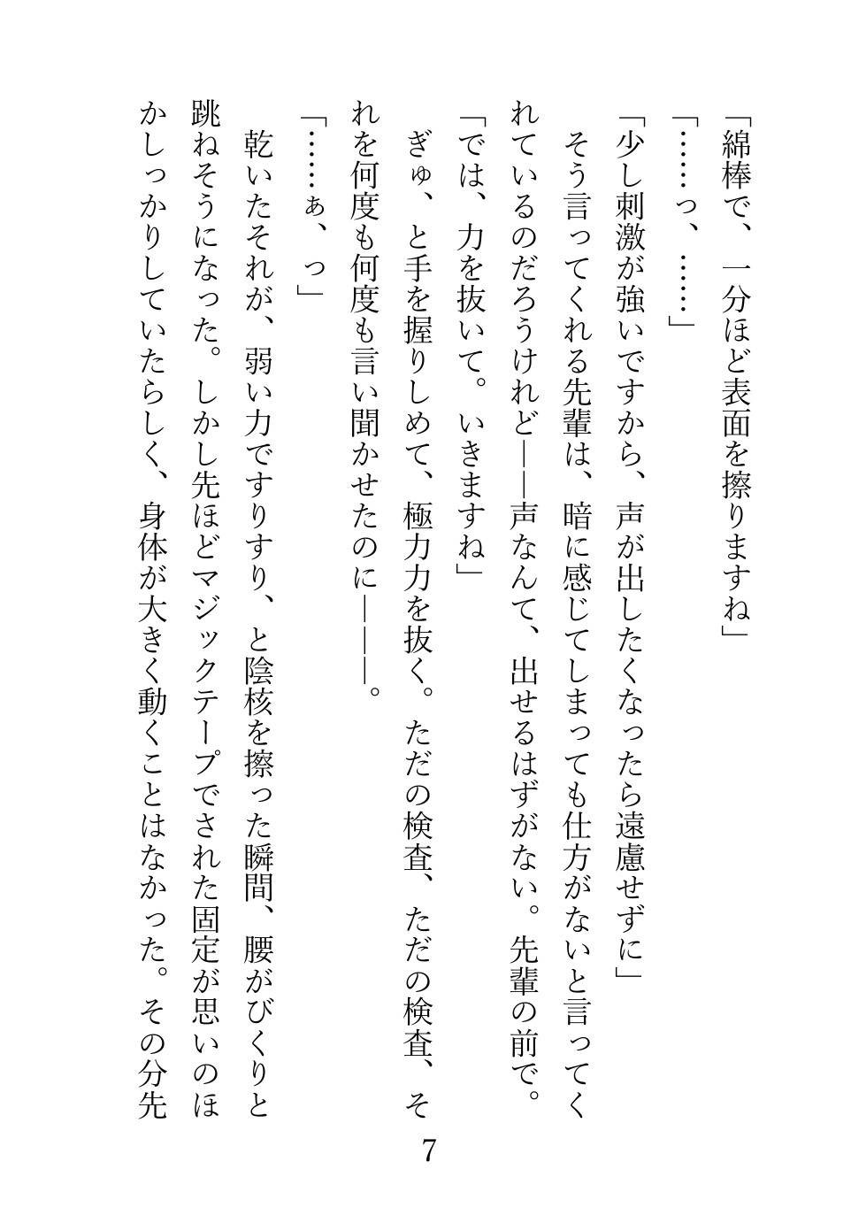 陰核に住み着く寄生虫の検査を行うために、医学部の先輩に綿棒で陰核を擦られることになって――。
