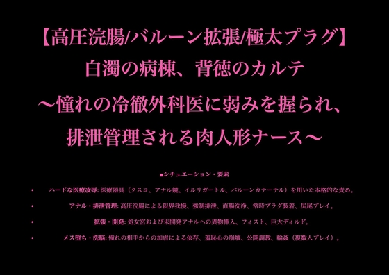 ![【高圧浣腸/バルーン拡張/極太プラグ】白濁の病棟、背徳のカルテ ~憧れの冷徹外科医に弱みを握られ、排泄管理される肉人形ナース~ [画像提供:DLsite.com] 【高圧浣腸/バルーン拡張/極太プラグ】白濁の病棟、背徳のカルテ ~憧れの冷徹外科医に弱みを握られ、排泄管理される肉人形ナース~](https://dldgirls.dojin.com/wp-content/uploads/2025/11/img_RJ01510872_img_main.jpg)