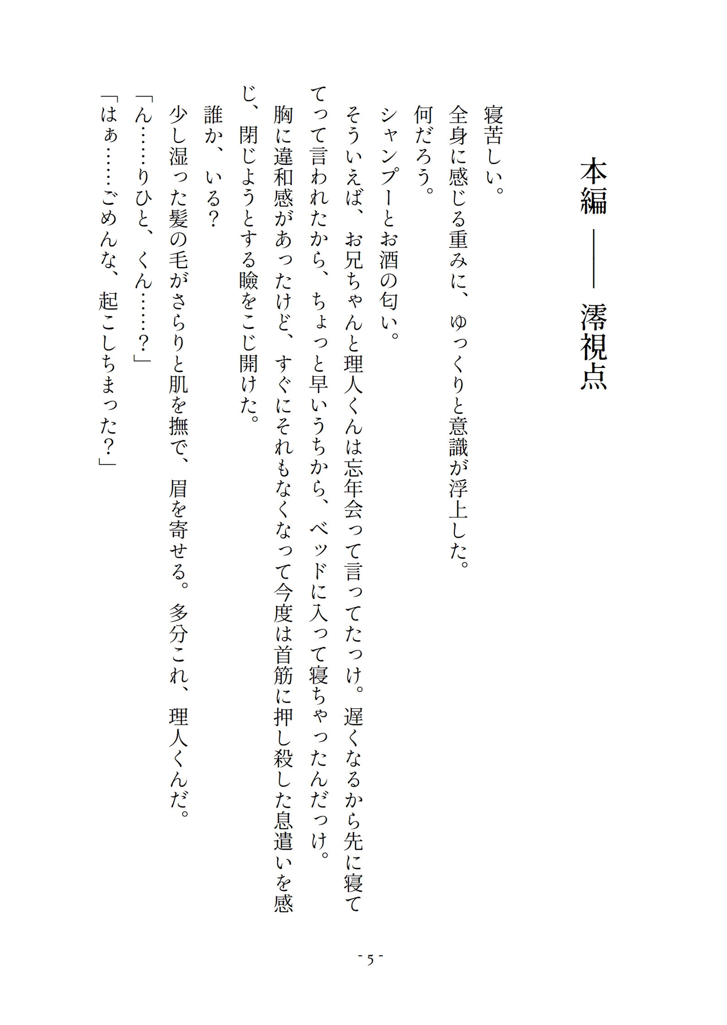 (澪視点:21,000字程度、理人視点:23,000字程度)