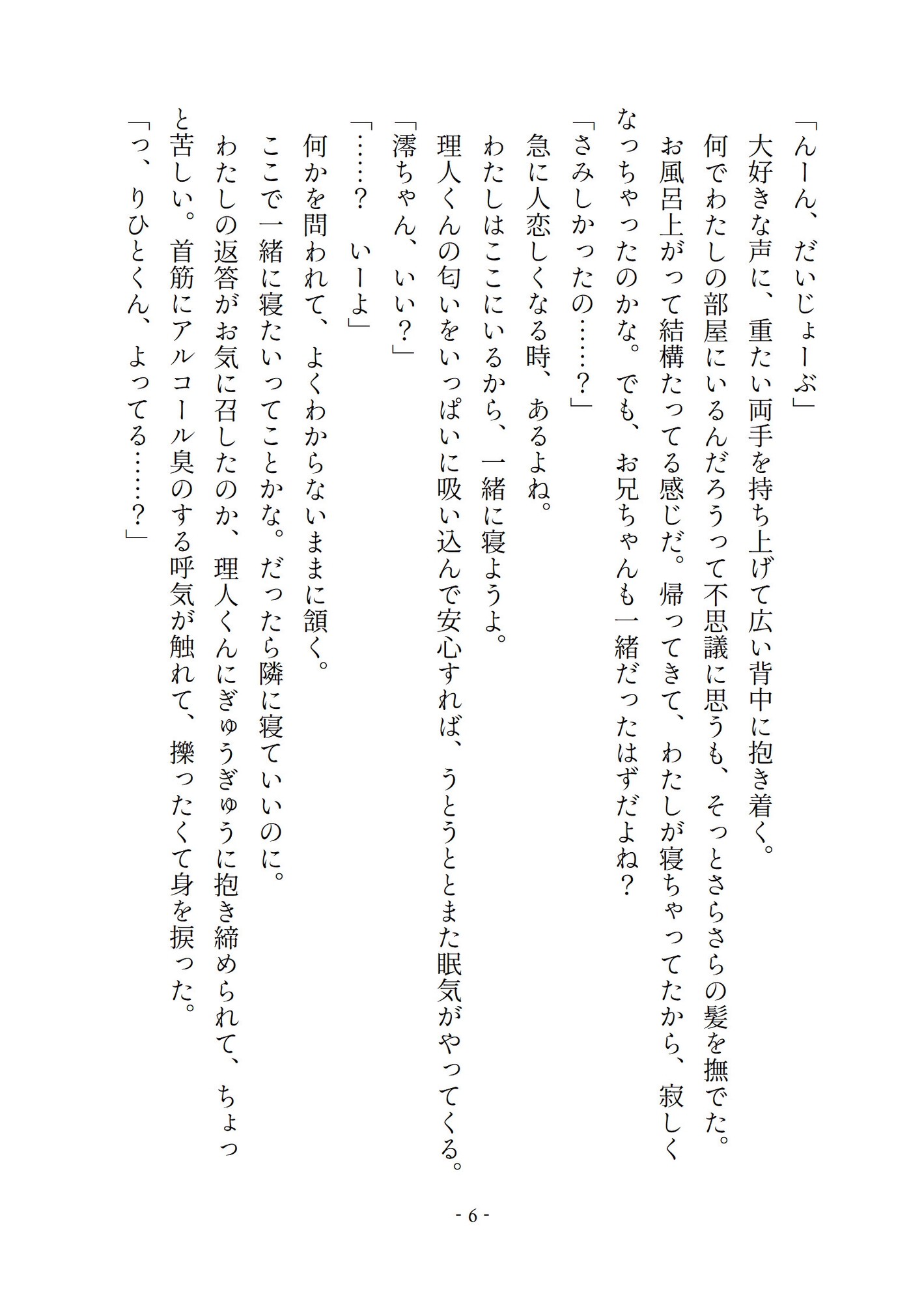 忘年会のアルコールと、彼女の無防備すぎる寝姿をキッカケについにタガが外れてしまう。わたしは、お兄ちゃんとその親友である理人くんと、三人でルームシェアをしている。