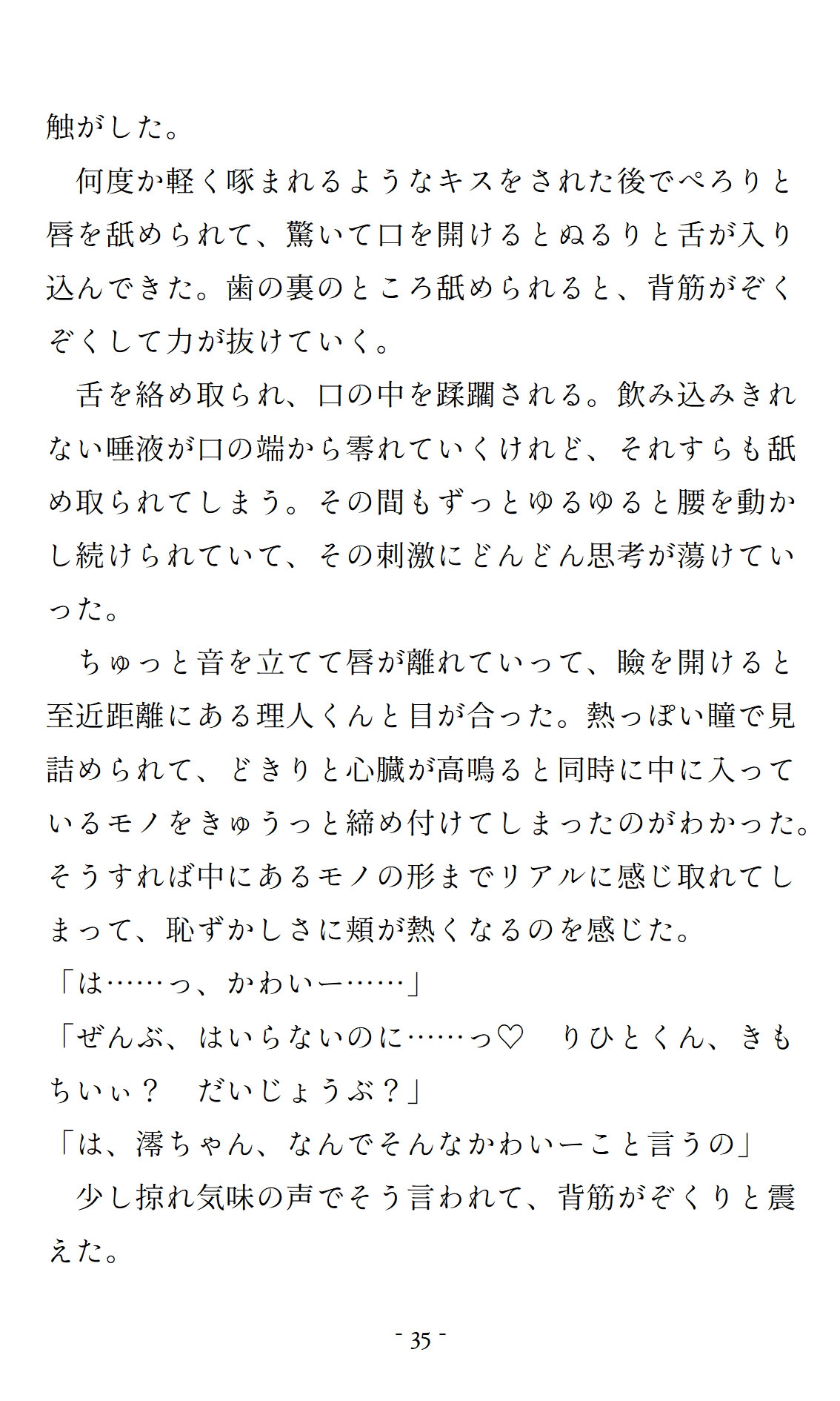 恋愛経験ゼロのまま彼と付き合い始めたため、彼からのキスやスキンシップにさえ戸惑ってばかり。彼が自分を大好きなことを知りつつ、恥ずかしさから一線を越えられずにいる。