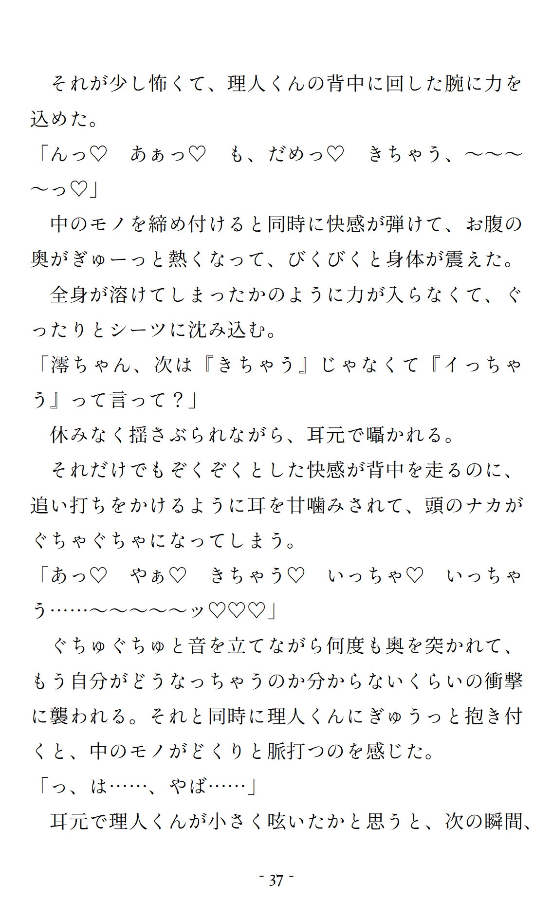 同居している兄の親友でわたしの恋人でもある、イケメン美容師の理人くん。忘年会で酔って帰宅した彼に『んー…夜○い』と寝込みを襲われた!?『耳、弱いもんな』と耳を舐められ、キスだけでイかされそうになり、『澪ちゃん可愛い』と胸を揉みしだかれ、指で弄ばれて『上手に潮吹きできたじゃん』と言われるまでイかされ、『手加減とか無理だろ』と気絶するまで激しく突かれる、大好きな恋人に初めてを捧げる超濃厚な初夜の物語。