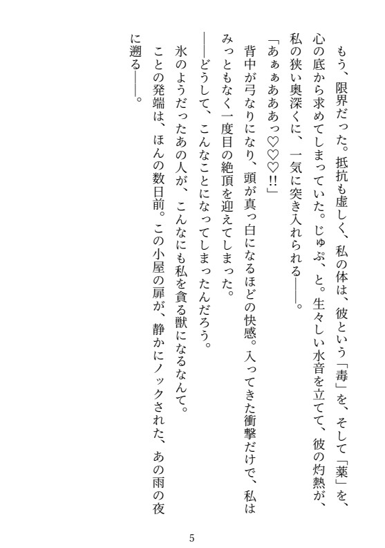 森の奥で暮らす、ドジな見習い魔女の私。ある日、呪いで「快感」を失ったという「氷の騎士」ヴァレリウス様が訪れる。彼を救おうと張り切ったのに、調合に大失敗! 完成したのは「呪いは解けるが、一日三回強烈に発情する」という最悪の媚薬だった。 「解毒薬ができるまでお前を監視する」――こうして、堅物な彼との強○同居生活がスタート! 普段は潔癖症な彼が、薬のせいで「時間」が来ると、荒い息を吐き、熱い瞳で私を求め始める。「こっちに来るな…!」「お前の匂いで…変になる…!」 苦しむ彼を助けたい。罪悪感と芽生えた恋心の間で、私はついに決意する。「私が…『解毒薬』になります!」 薬のせいで理性が飛んだ彼の、激しい愛撫。氷の騎士が私にだけ見せる、どろあまの独占欲。「もう薬のせいにはしない。お前が欲しい」――♡ 私は彼専用の「解毒薬」になることを選んだ。◆ ヒロイン(名前なし・一人称視点)
