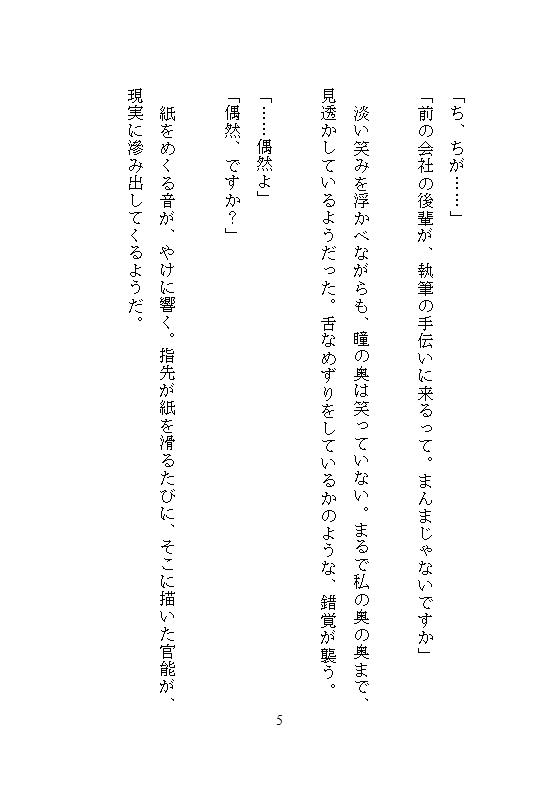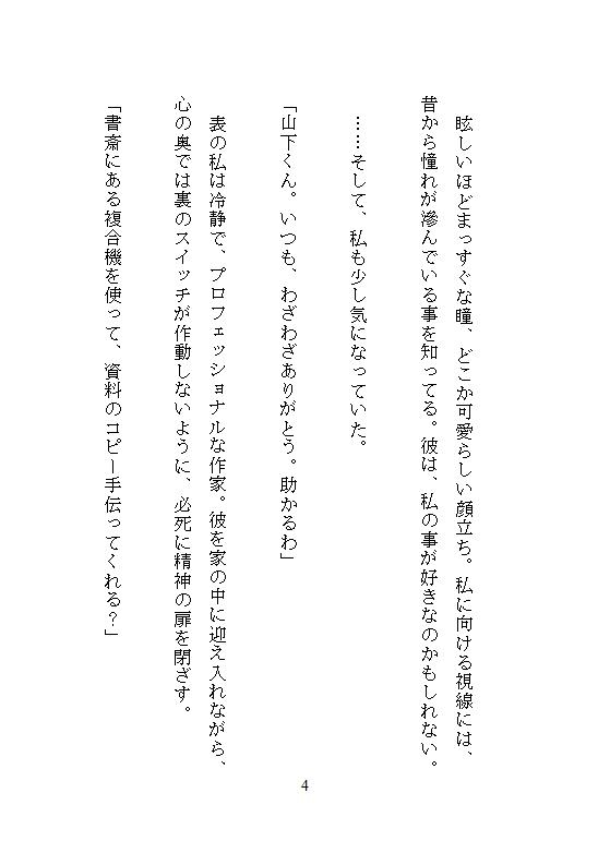 だが、作業中のふとした偶然から、私の棚に隠していた裏の官能作品の原稿を湊に見られてしまうのだった。