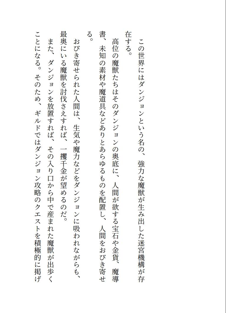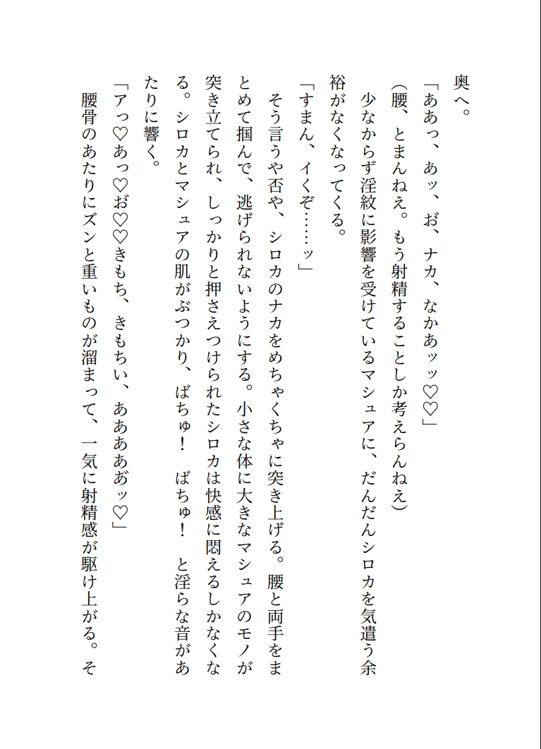 ギルド一の実力を持つ半人半獣のマシュアのもとに緊急の救助依頼が出される。内容は、サキュバスの生成したエロトラップダンジョンに、一人の白魔導士が取り残されてしまったというものだった。急ぎ救助に向かい、なんとか救出するが、その場で彼女に一目ぼれしてしまう。だが、彼女にはダンジョンの主であるサキュバスから施された淫紋が残っており──!? 淫紋を消すために死ぬほどセックスしまくる話になります。ただただセックス三昧のお話です。