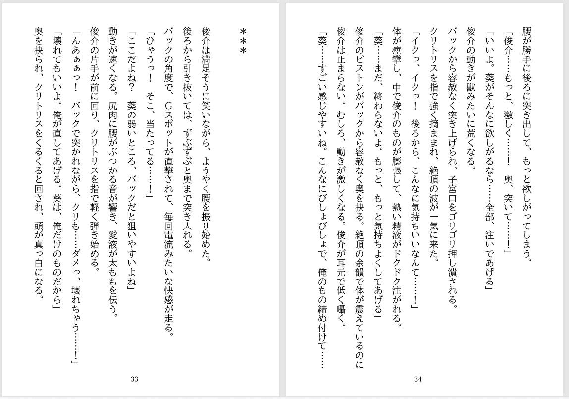 ──キスから始まり、首筋、胸、秘部……俊介の指と舌が葵の体を隅々まで覚醒させ、何度も絶頂を強いる。