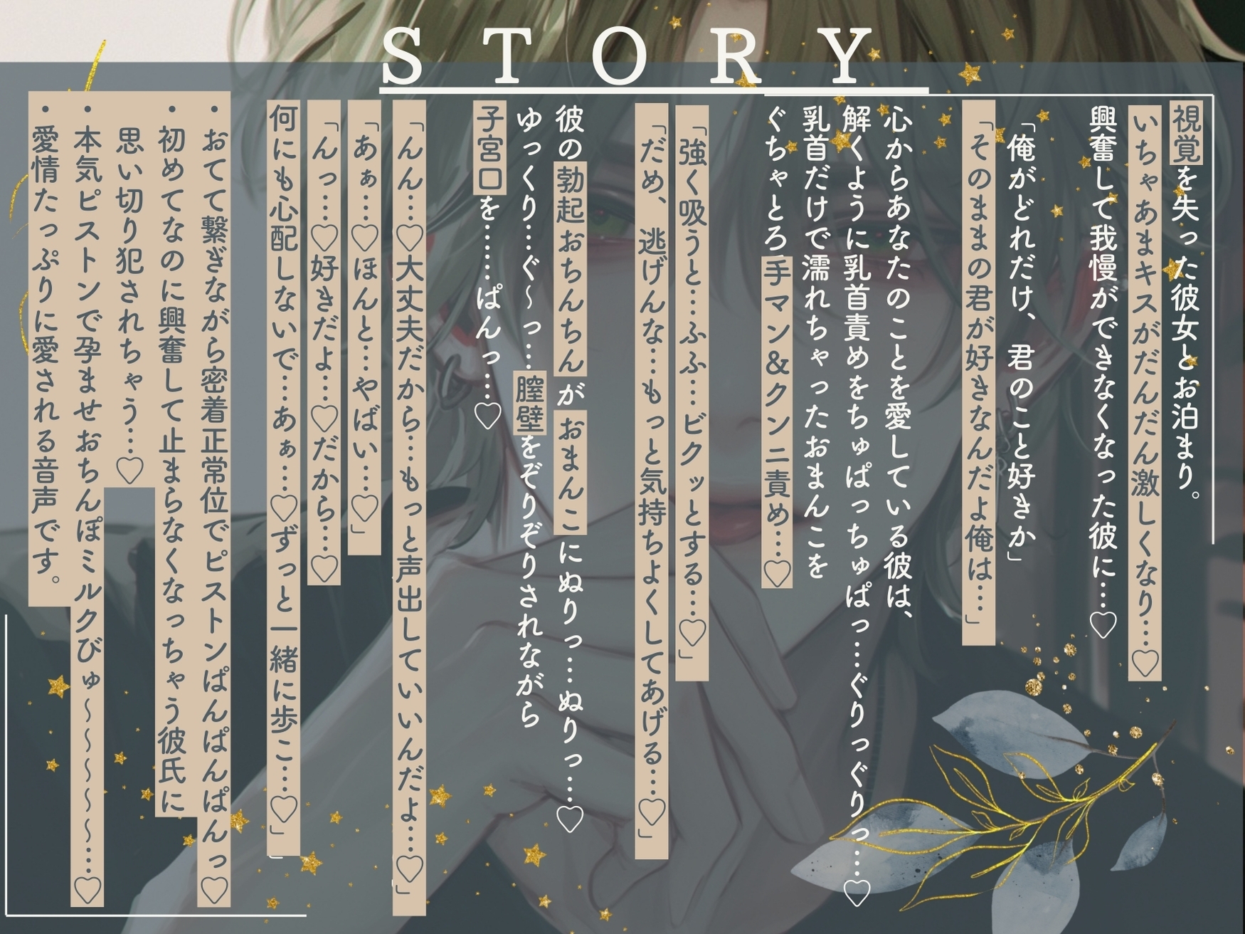 ぐちょ濡れします…1人で没頭できるときに聴いてください…視覚を失った彼女とお泊まり。「んん…♡大丈夫だから…もっと声出していいんだよ…♡」「あぁ…♡ほんと…やばい…♡」「んっ…♡好きだよ…♡だから…何にも心配しないで…あぁ…♡ずっと一緒に歩こ…♡」
