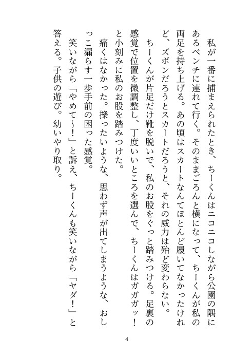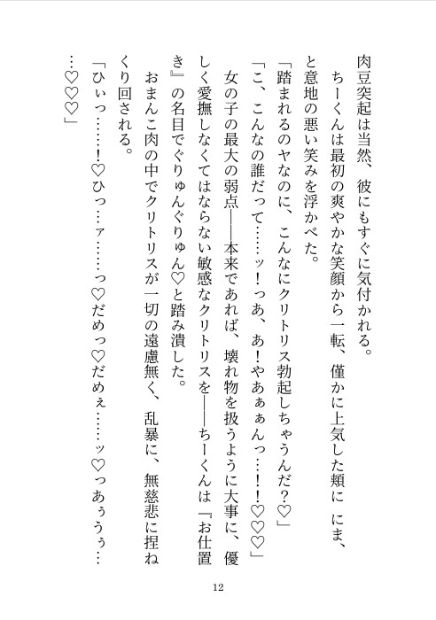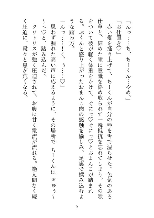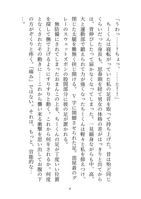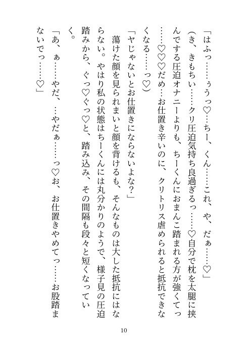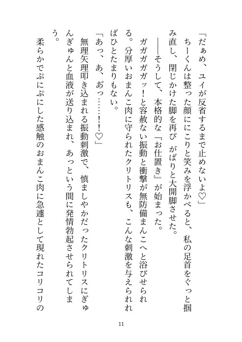 子供同士のおふざけだった電気あんまでのお仕置き……成人した今でもそれは続けられていて……。大切なところを足で踏まれてマゾアクメしてしまうヒロインを愛しながらも優しく虐める幼馴染とのラブラブえっち小説です。