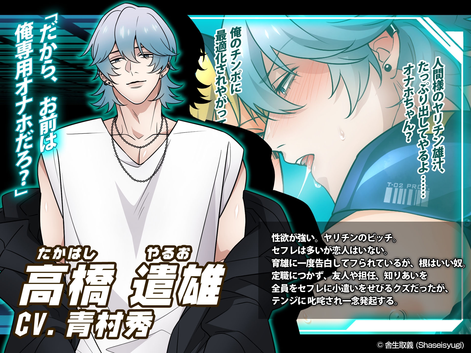 コメント、キャラクターの魅力や自慰体験など赤裸々わいわいトークをお届け。【天我壱号/テンイチ(受)】 CV:大野剣