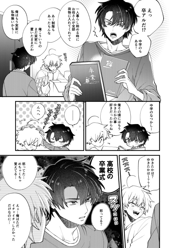あらたの部屋の片付けに付き合うゆきたかは卒業アルバムを見つける。