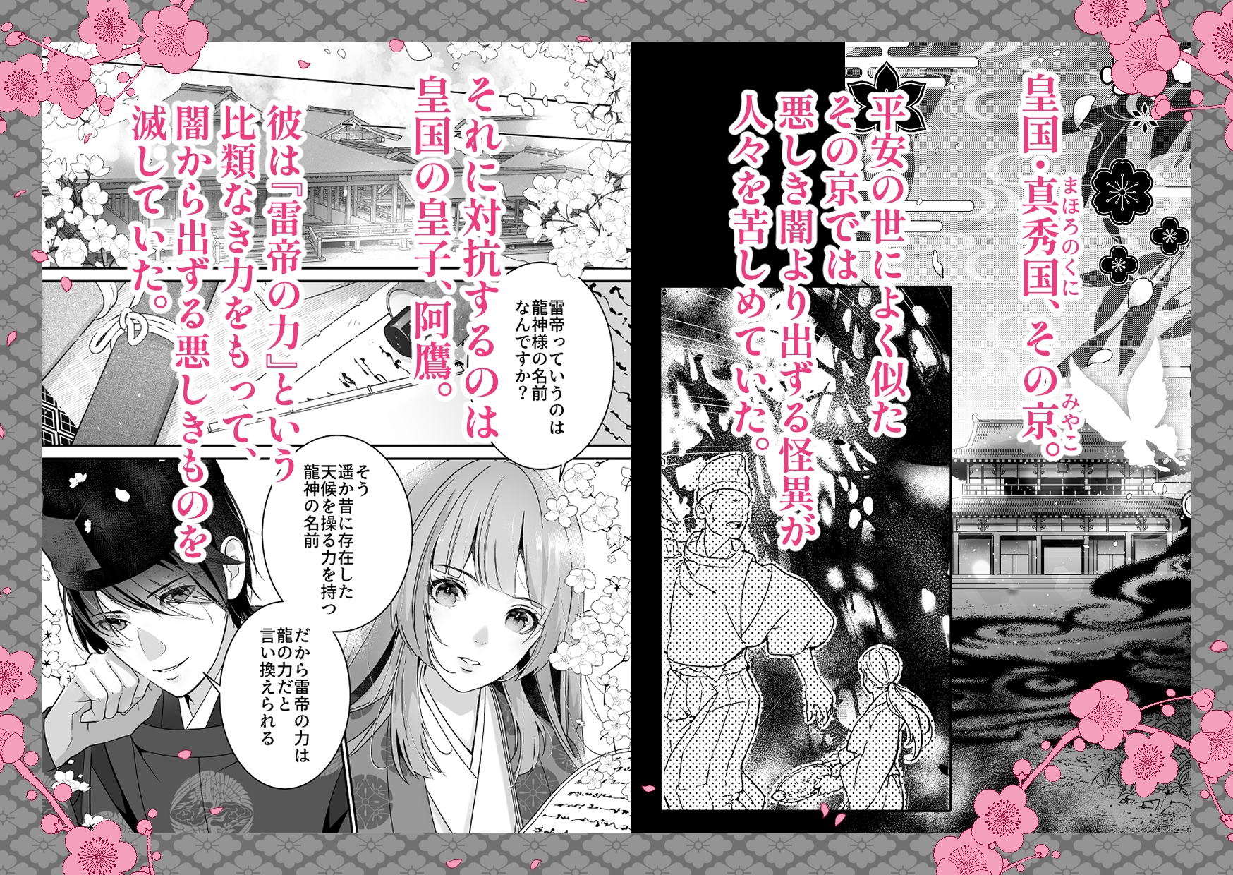 舞台は平安時代風異世界。稀有な力を持つ皇子と対となる巫女の物語。