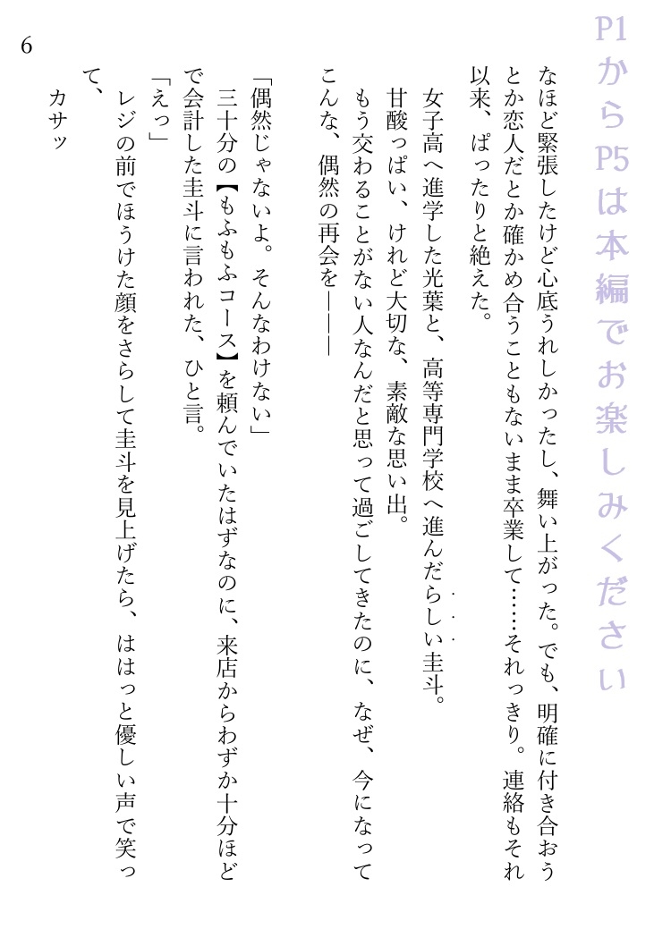 犬カフェで働く光葉(みつは)は、ある日、中学時代、明確に付き合っていたわけではないけれど毎週末のようにデートしていた同級生の圭斗(けいと)が突然来店してきたことに驚く。