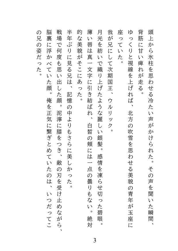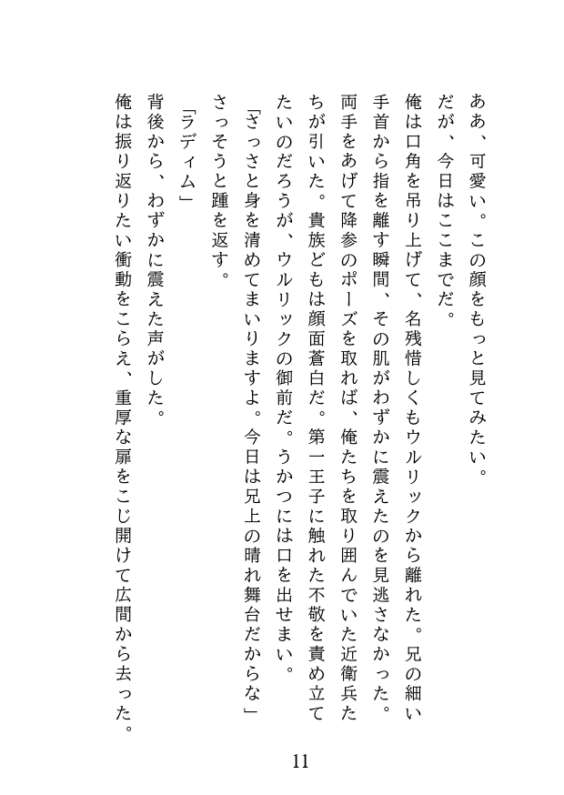 氷の美貌を持つ第一王子ウルリックは、戴冠の前夜、禁断の秘儀を知らされる。