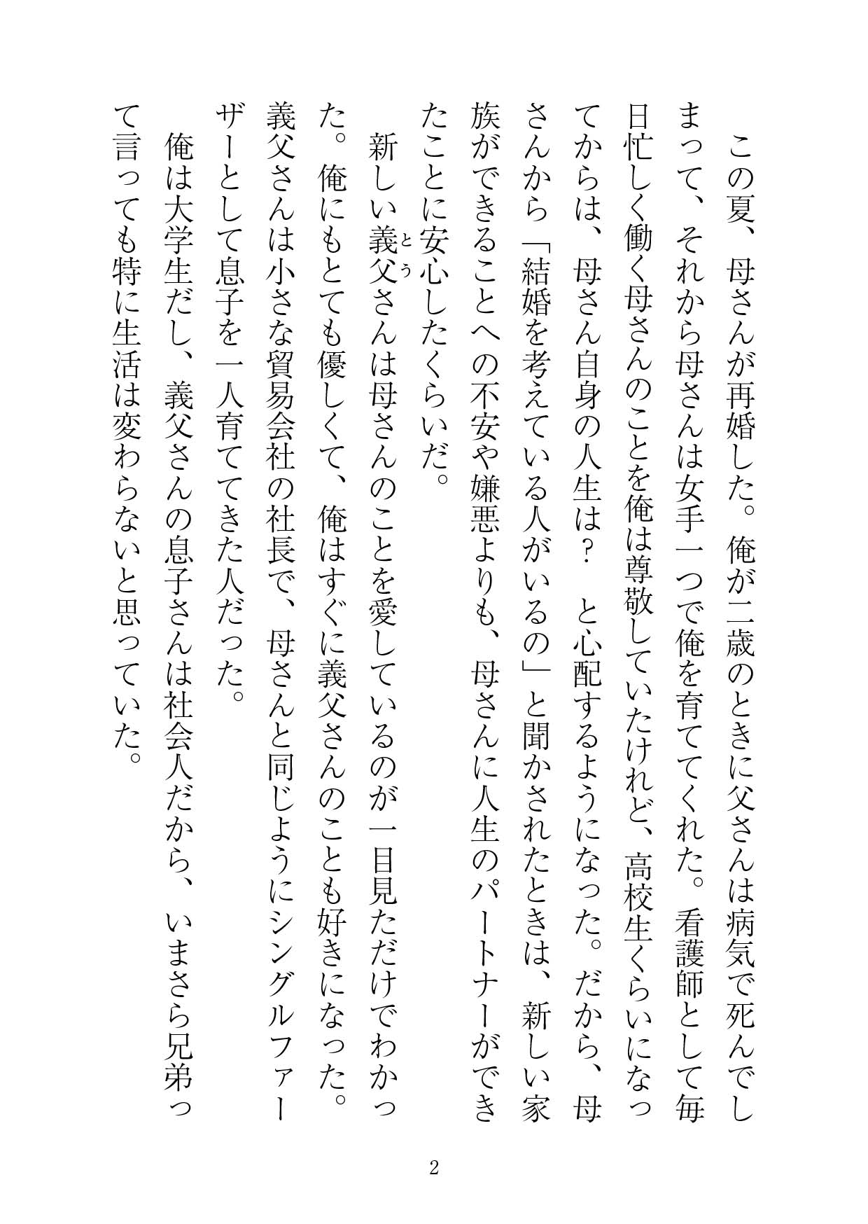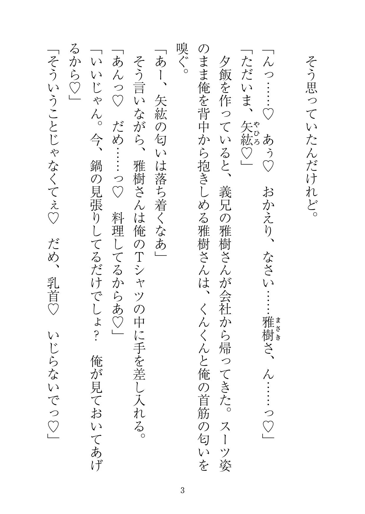 両親の再婚により義兄になった雅樹と一緒に二人暮らしを始めることになった矢紘。