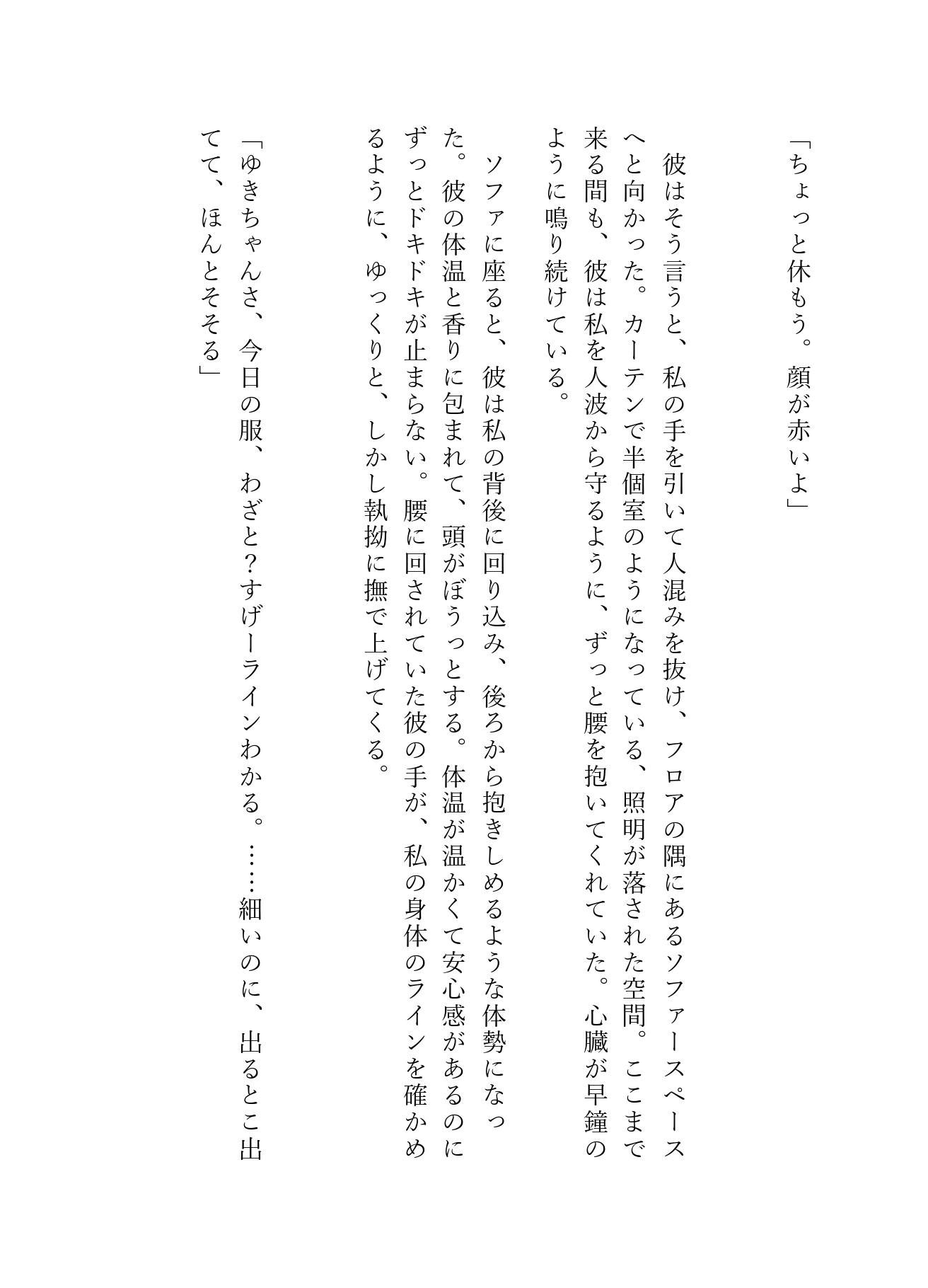 「ゆきちゃんさ、今日の服、わざと? すげーラインわかる。……ほんとそそる」