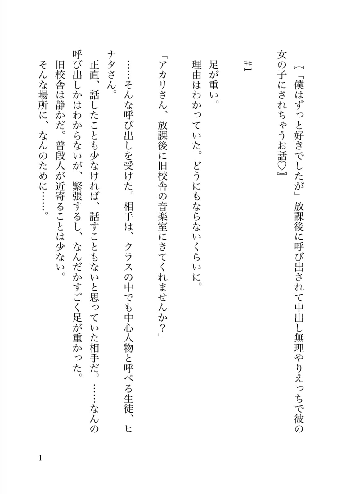クラスの中心人物であるヒナタに呼び出されたアカリ。呼び出しに応じると、彼はアカリのことが好きだと言い出して……?