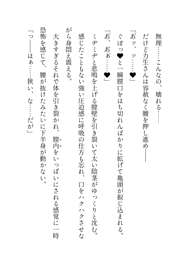 暴漢に襲われかけた主人公・都和。そこに現れた筋骨たくましい男性に助けられる。いい雰囲気になって、つい求めに応えたら男性は巨根で絶倫で……