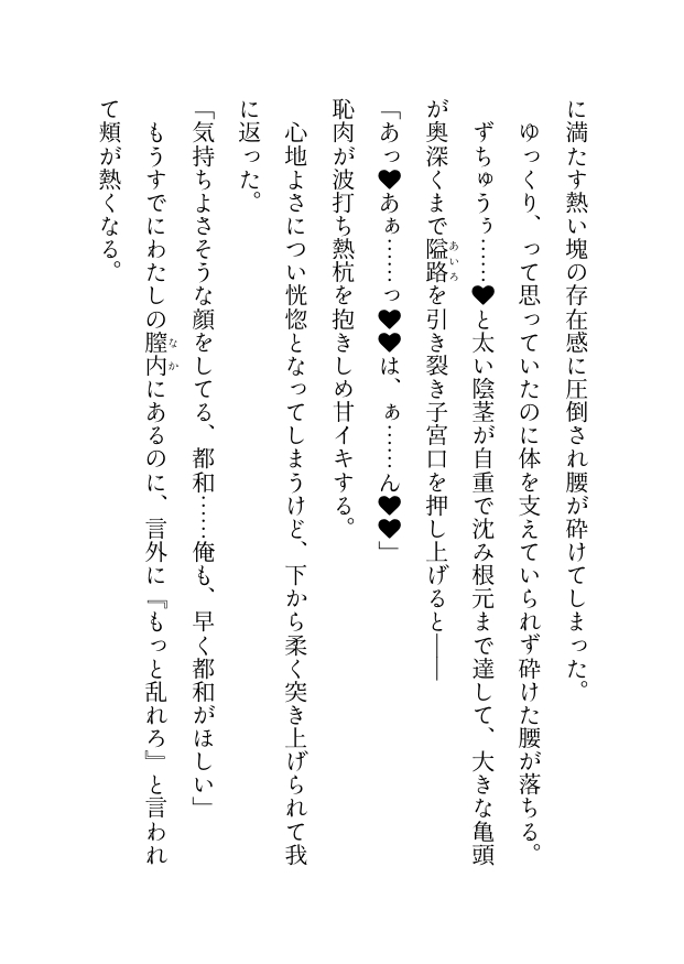 ◇ハート喘ぎ(あり、なし同梱)、濁点喘ぎ、ハート多用、オノマトペ少々、「いく」連呼