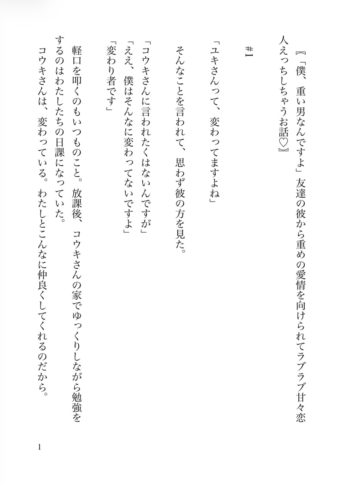 「ユキさんって変わってますよね」そうコウキに言われたユキ。その所以を問うと、「僕、重い男なんですよ」と言われて……。
