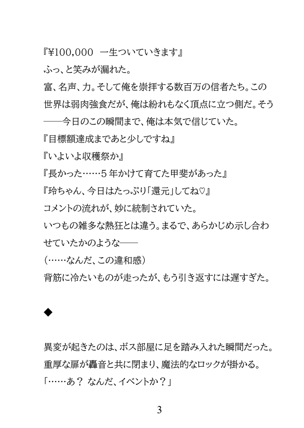 最強の剣技と美貌、そして数百万の信者を持つ彼は、ある日の記念配信で、未踏破ダンジョンに足を踏み入れる。