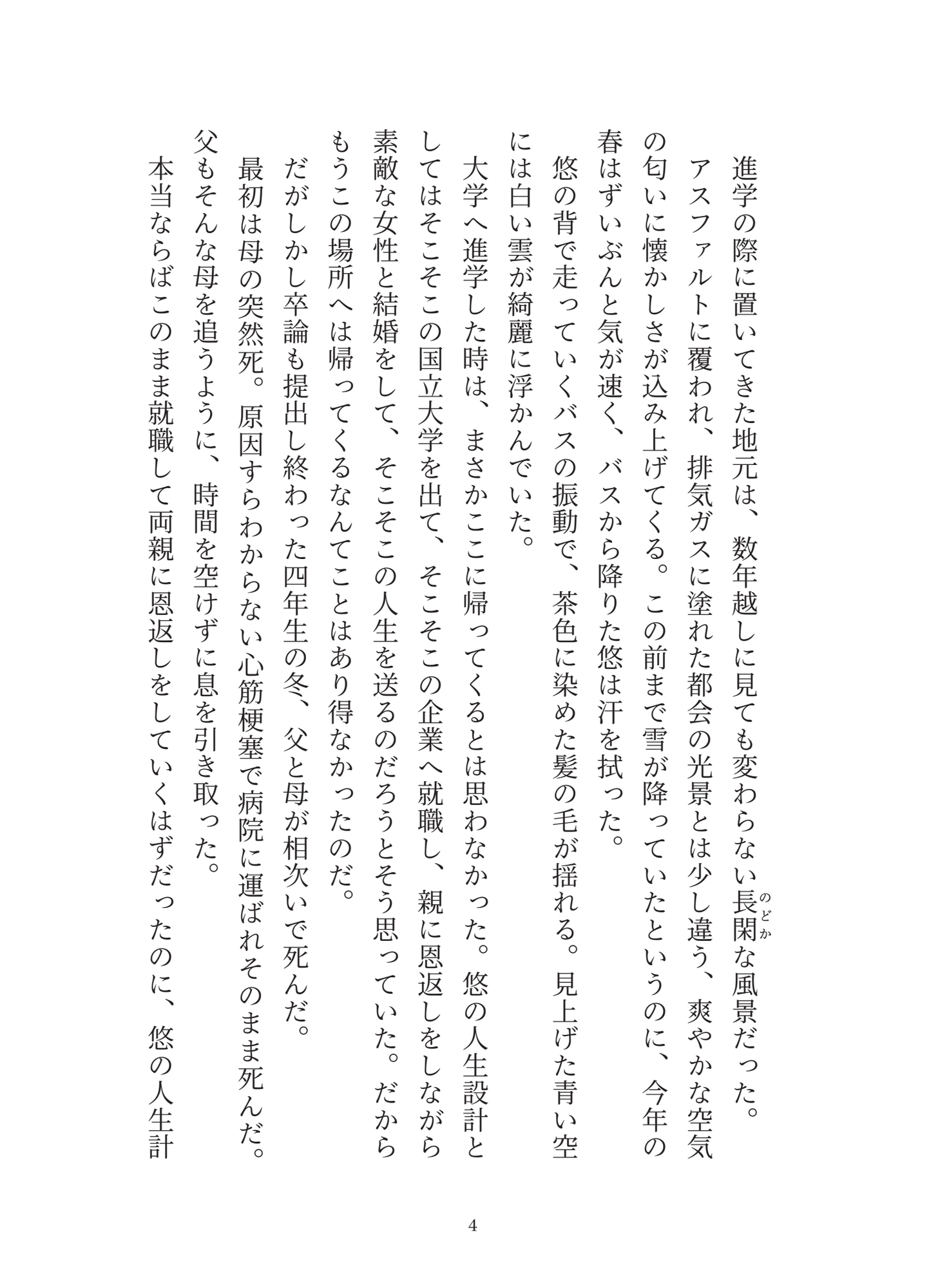両親を失い傷心のまま地元に帰った主人公の悠。