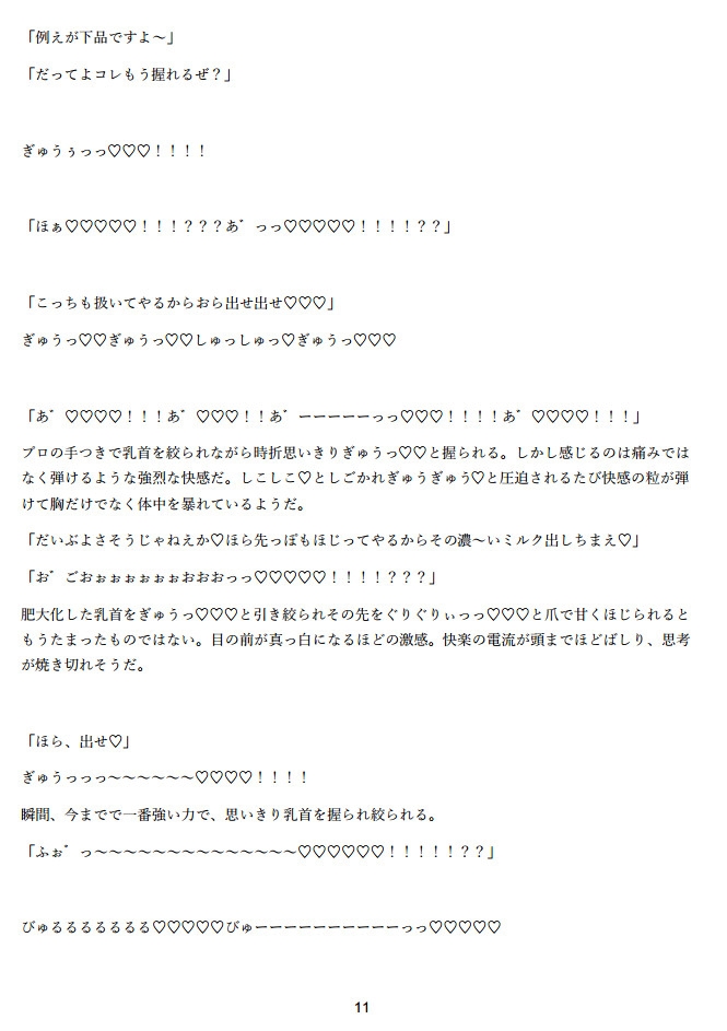 搾乳/搾精/乳首肥大化/輪○/拘束/調教/連続絶頂/結腸責め/乳首責め/イラマチオ/♡喘ぎ/濁点喘ぎ/潮吹き/複数