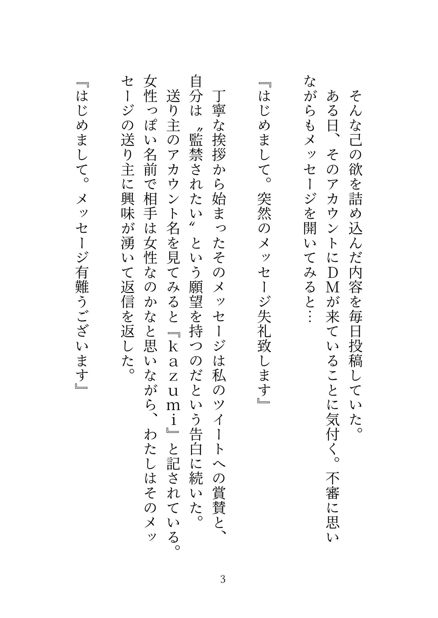 監禁願望を満たすため裏垢で出会った“従順な彼”。理想の関係のはずだったのに、別れ話を口にした途端彼は豹変してわたしは取り返しのつかない身体にされてしまう。