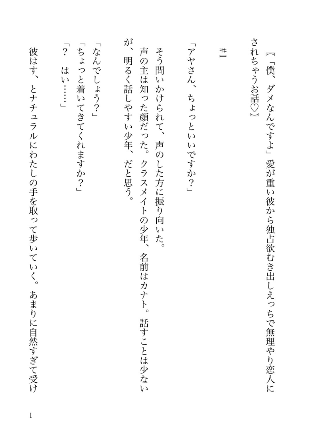 いつも明るい少年カナトに連れられて人気のない場所に行ったアヤ。カナトは「僕、ダメなんですよ」と一方通行な愛情をぶつけて来て……。
