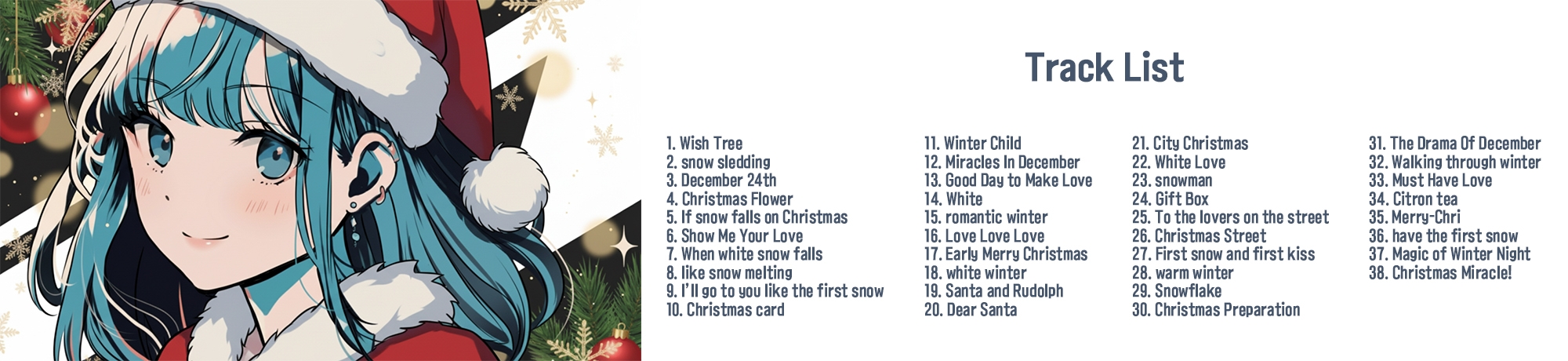 Youtube 「[Playlist] 胸躍るクリスマスを待ちながら聴く | Carol Hip-Hop」をパッケージした、ロイヤリティフリーのBGM集です。