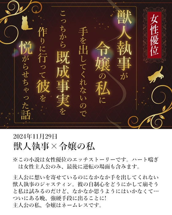 (2)女性優位★獣人執事が令嬢の私に手を出してくれないのでこっちから既成事実を作りに行って彼を悦がらせちゃった話 (RJ01293231)