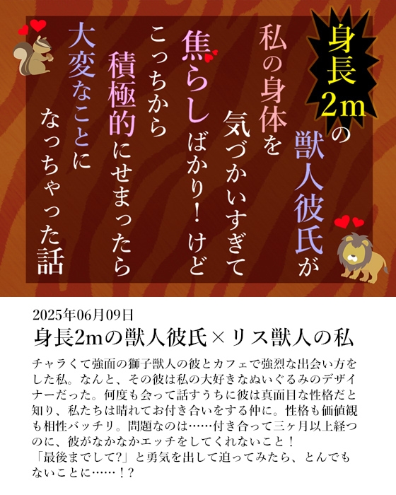 (4)身長2mの獣人彼氏が私の身体を気づかいすぎて焦らしばかり!けどこっちから積極的にせまったら大変なことになっちゃった話 (RJ01400477)