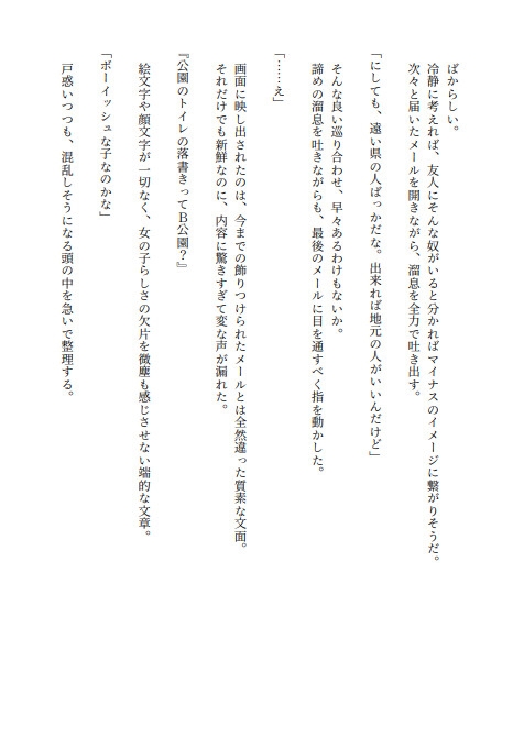 片っ端から駄目なことをするような悪友の誘惑に負け、登録したデアイケイサイト。 そこで知り合った相手は、なんだかボーイッシュな子で…!?/一次創作BL/年上美形×平凡/受溺愛/受視点