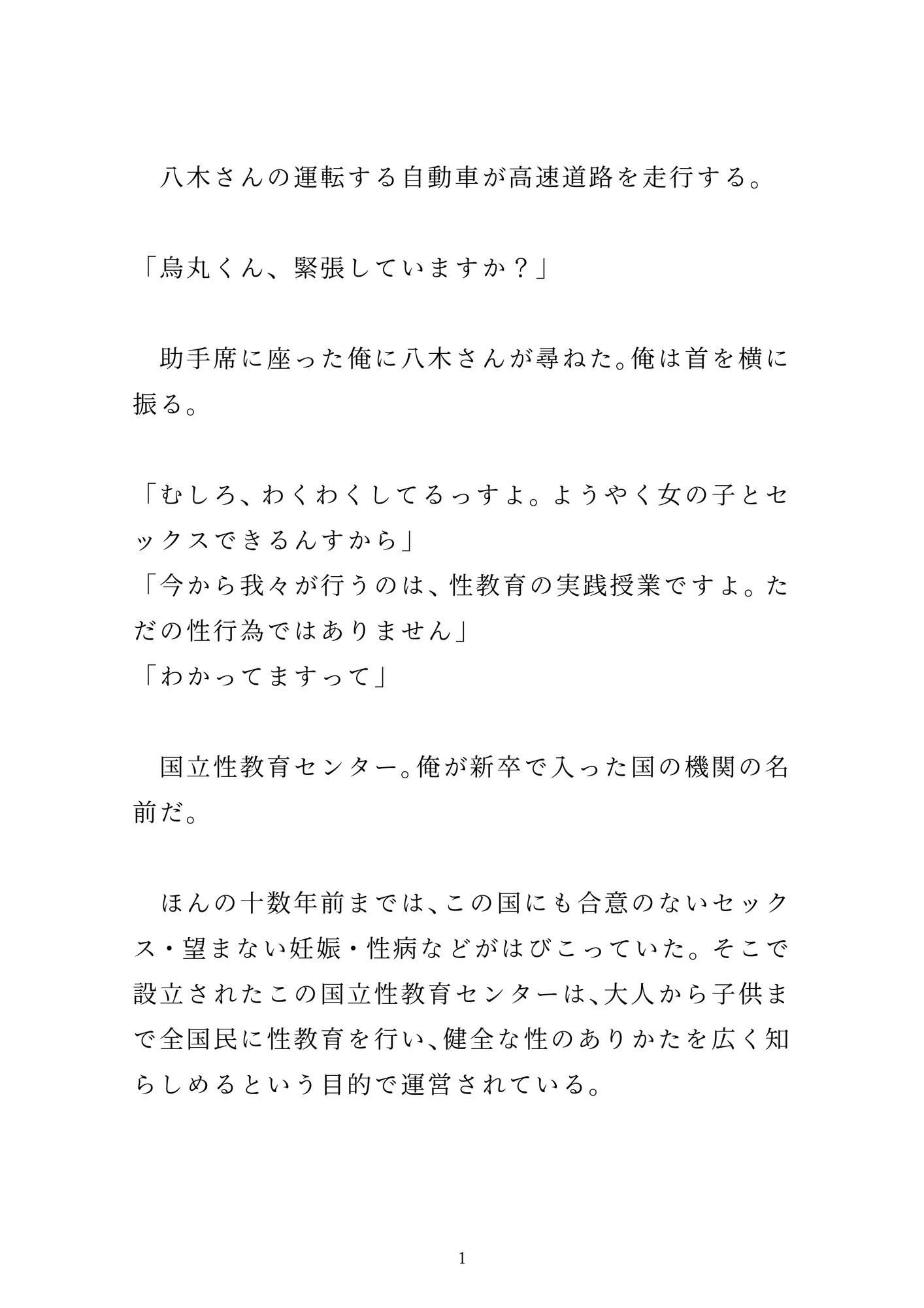 22歳男性。童貞だが、女の子とセックスがしたいという不純な動機で性教育センターの職員になった。連続絶頂/無理矢理/快楽堕ち/潮吹き/ローションガーゼ/耳舐め/視姦/尿道責め/乳首責め/結腸責め/イラマチオ/濁点喘ぎ/♡喘ぎ