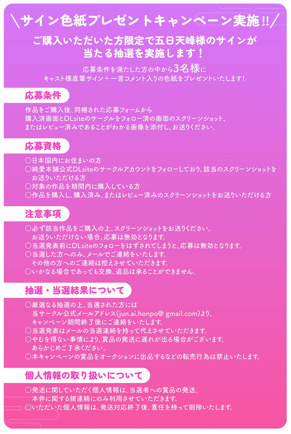 ※全編ダミーヘッドマイクでの収録となっており、効果音はフォーリーサウンドでの収録をしております。ご視聴の際はヘッドフォンなどでお楽しみください。