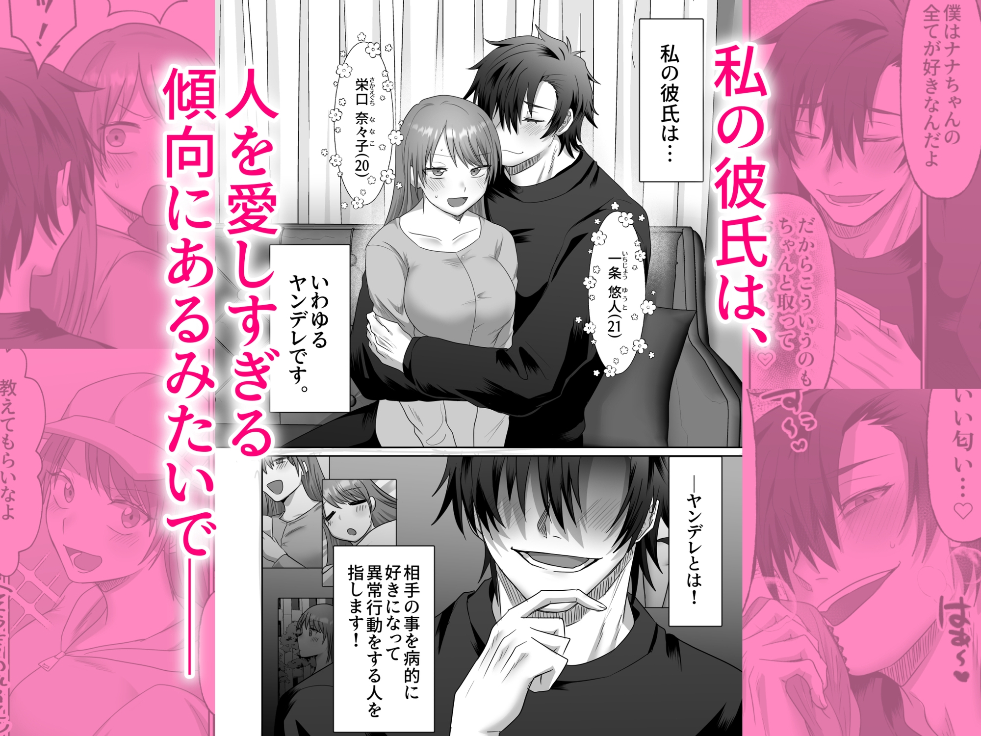 大学生の栄口奈々子が付き合った彼氏、一条悠人は…実はヤンデレだった! 「僕に黙って今日どこ行ってたの♡まさか…他の男のところ?」 盗聴器を仕掛けたり、隠し撮りやゴミの回収、奈々子の私物で自慰をしていたりと愛が止まらない悠人。 だが…奈々子は直接的に抱かれたことなどはなかった。 そんな悠人に奈々子は直接聞いてみることに… そして、羽目が外れた悠人との絶倫らぶらぶ初えっちが始まる…♡