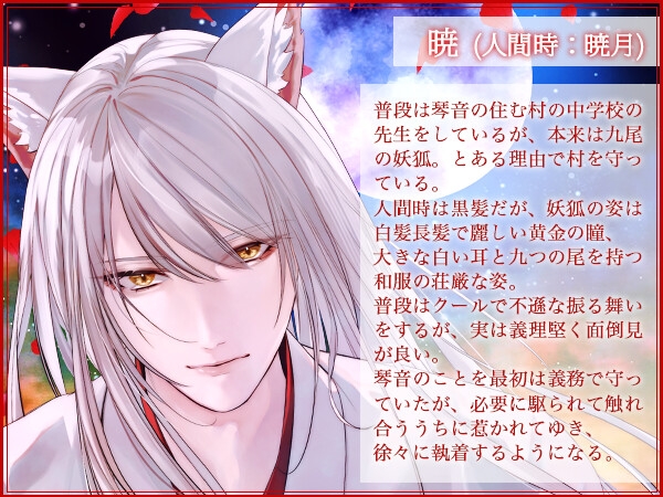 普段は琴音の住む村の中学校の先生をしているが、本来は九尾の妖狐。とある理由で村を守っている。