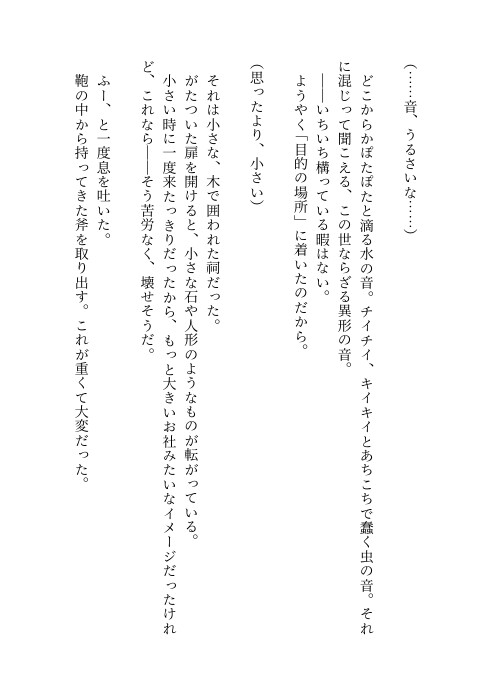 大学でできた初めての親友、いろはを守るために地元の村の祠を破壊しようと決意した琴音。