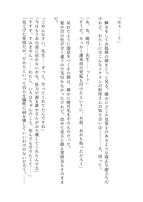 快楽を餌に生気を吸うらしいその怪異のせいか、ぼーっとする中でお狐様が実は暁月先生だということを知る。