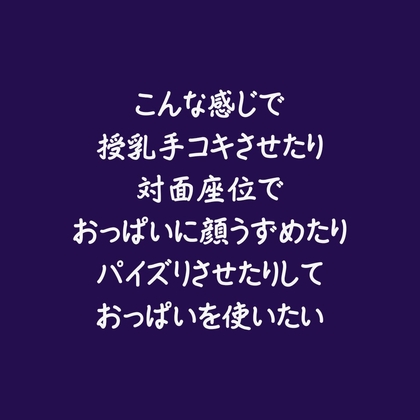 ただ勝手に揉んだり、服めくって揉んだり、直で揉んだりしてその後授乳させて適当にえろいことをしてもらい、授乳中出しとかおっぱいに顔うずめてガン突きしたりして、パイズリもさせたいよねって言う感じの音声です。