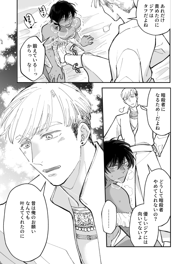 暗殺者のジアは、幼馴染であり年下の王族ヴァイエルに捕らえられてしまった。
