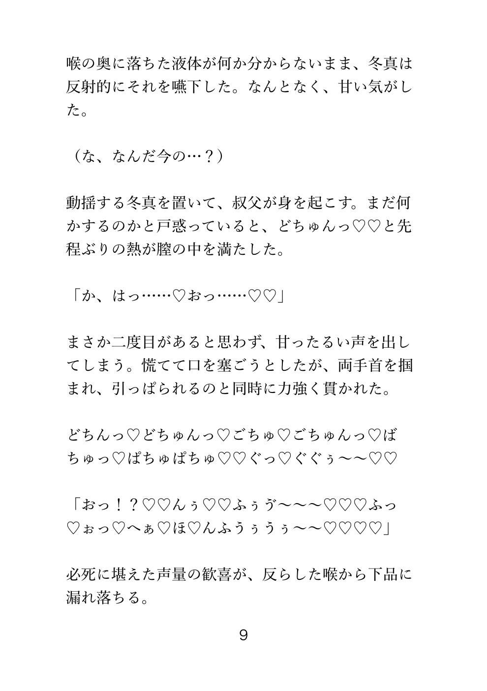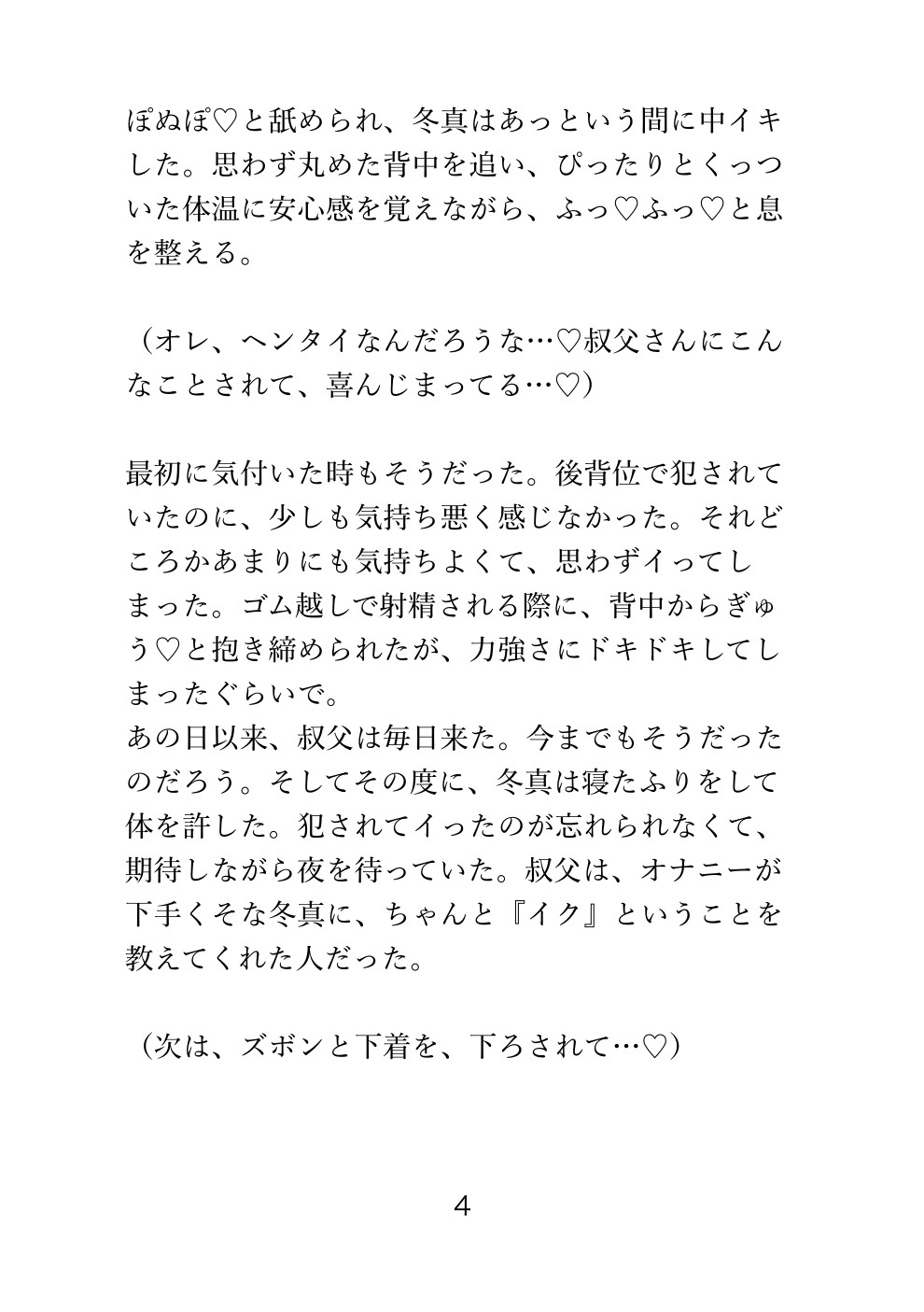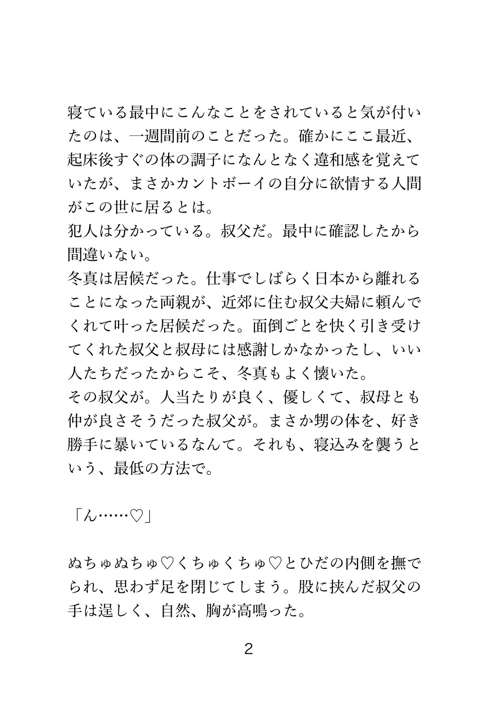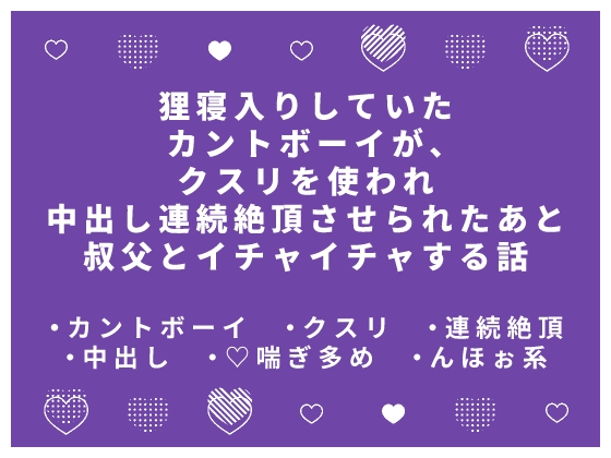 叔父からすやすやえっちをされていたことに気付いたカントボーイが、寝たふりをしてセックスを楽しんでいたら薬を飲まされてしまい、イかされまくるお話。
