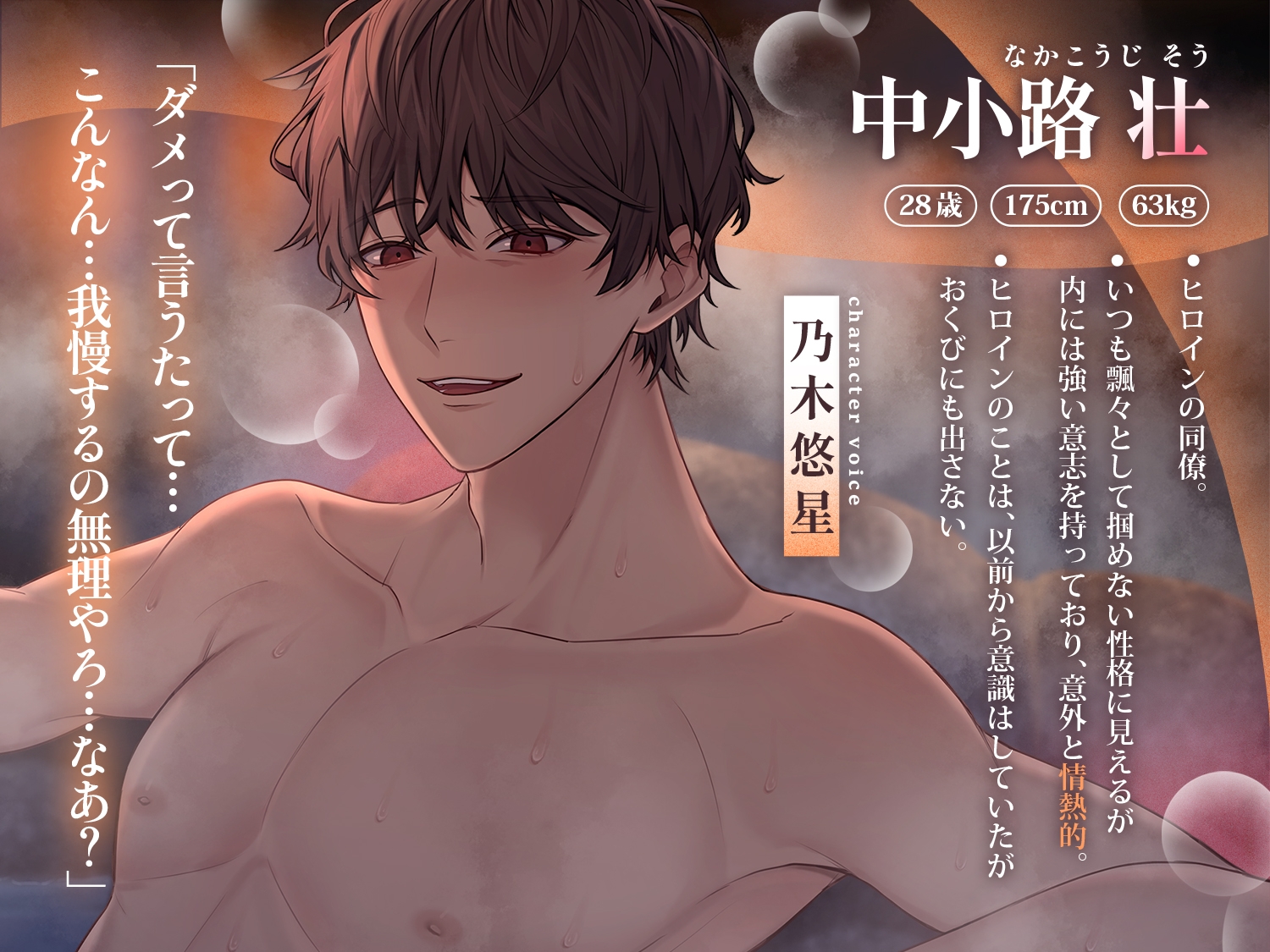 【全編KU100収録】彼と別れてしばらく経った後に予約していた人気の温泉宿、キャンセル期限は切れているし、温泉には行きたい、ということで一人でやってきたけれど、そこでばったり同僚と出会ってしまい…「あー!やっぱりそうや。 まさか県外の旅館で会うとは思わんから、人違いちゃうかと…なんしてんの?」秘かに思いを寄せていた同僚から迫られるシチュエーションです。