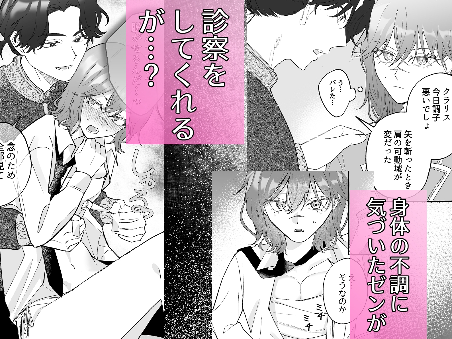 真面目で不器用な女騎士クラリスが騎士団の救護担当であり軽薄な男、ゼンに胸の診察で頼ったその日、ふざけてるようで本気なゼンの想いと、心も身体も溶ける体験が交錯する――