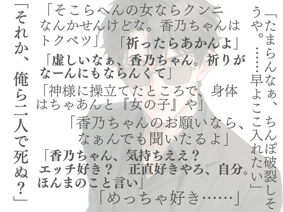 教会で犯されたり、夜行バスやサービスエリアでひっそり致したり、地元に帰って傷の舐め合いセックスのちラブラブセックスをしたりしています。光本香乃(こうもと・かの)