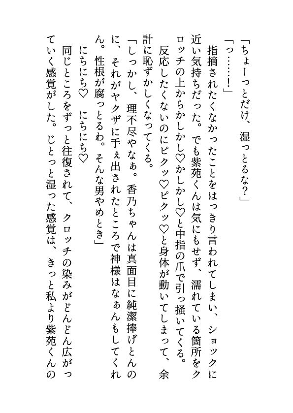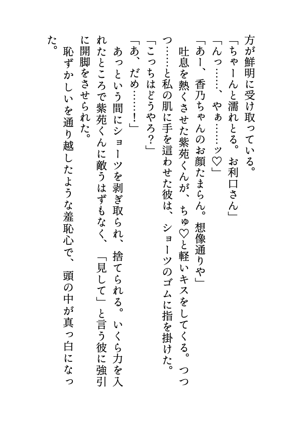 出会った当初から香乃に自分と同じ匂いを感じ、学校では誰とも関わり合いになるつもりはなかったのに話しかけてしまった。溺愛、言葉責め、クンニ、潮吹き、連続イキ、中出し