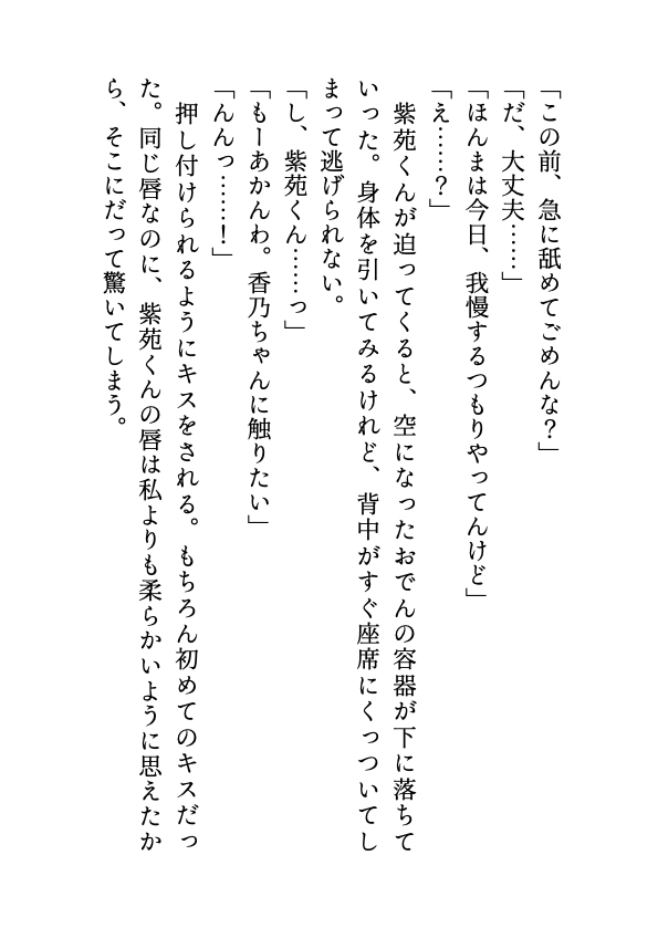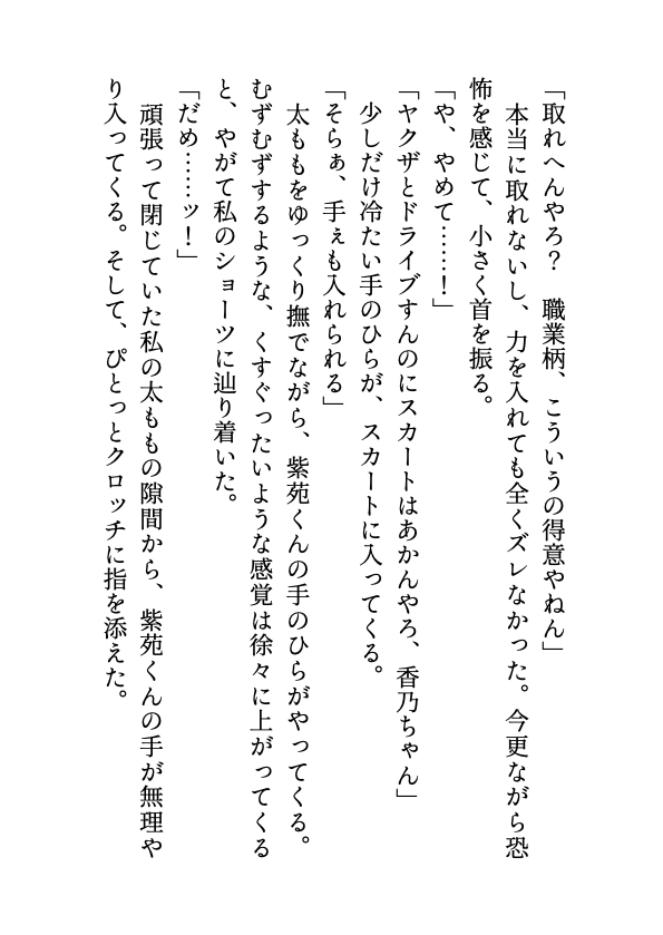 「ほんまは今日は我慢するつもりやってんけど、もーあかん。香乃ちゃんに触りたい」