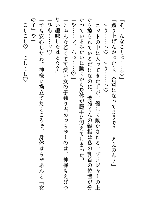 貞潔の誓いを立てている香乃に迫る紫苑。腕を縛られてしまった香乃は、そのまま紫苑に丁寧に愛撫をされながら処女を奪われてしまい……。