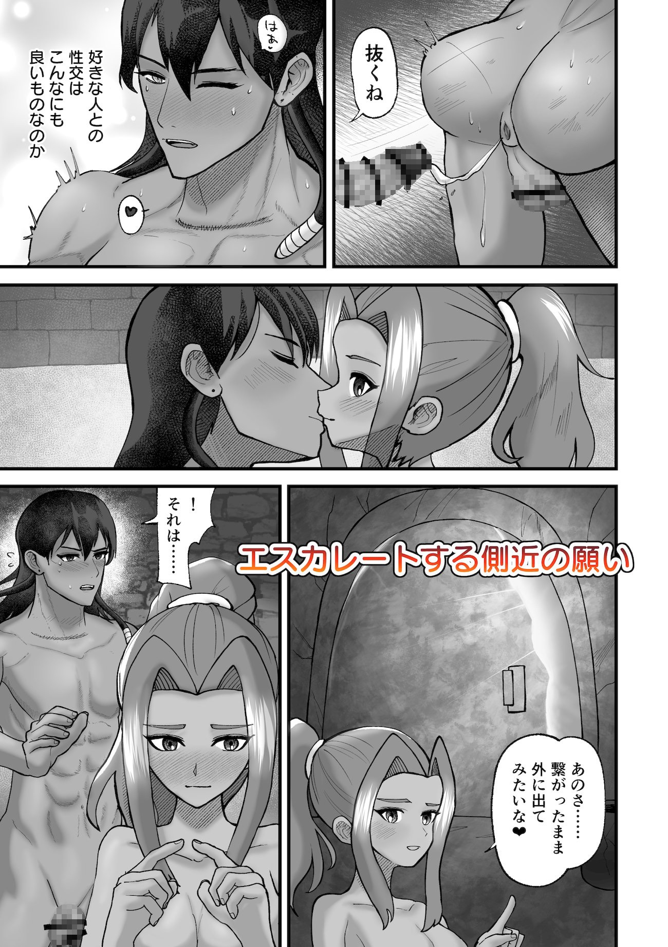 (※女性攻め・逆転なし)女王や研究者によって搾精されていた領主がふたなりの側近と再会し仲を深めていく漫画です。前半は少しだけ女王(研究者)×領主の描写があり、ほとんどは側近×領主の展開になります。野外露出カップルの隣で性交等行います。回想で昔の姿の領主が女の操る触手に襲われる展開があります。