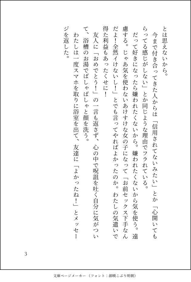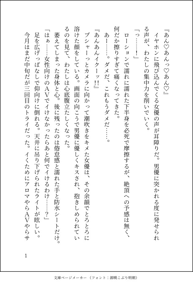 プレイは言葉攻めとクンニが好き。汚めのプレイも好きな子限定で好き。OL。人生で一度も絶頂したことがないのがコンプレックス。